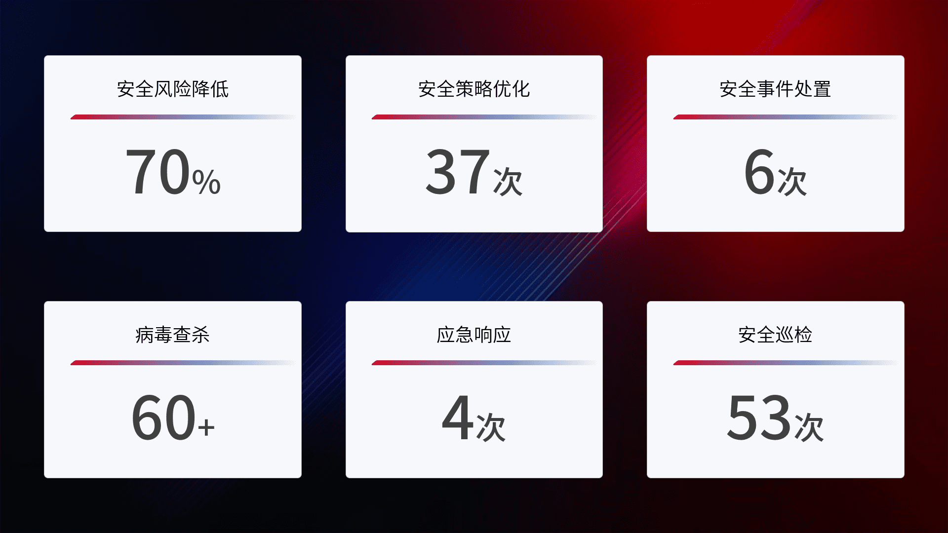 综合报告与文档服务: 定期提供安全事件处置报告、、、、周/季度总结报告和年度总结报告;详尽的文档服务可帮助客户了解网络安全状况,,,支持决策制定和流程优化。。。